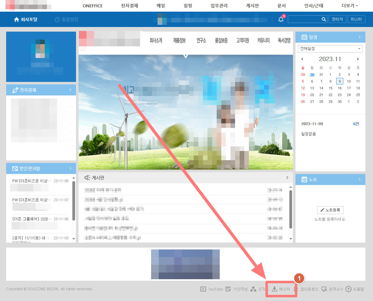- 로그인 후, 홈페이지 하단에서 [메신저 다운로드] 버튼을 찾습니다.
