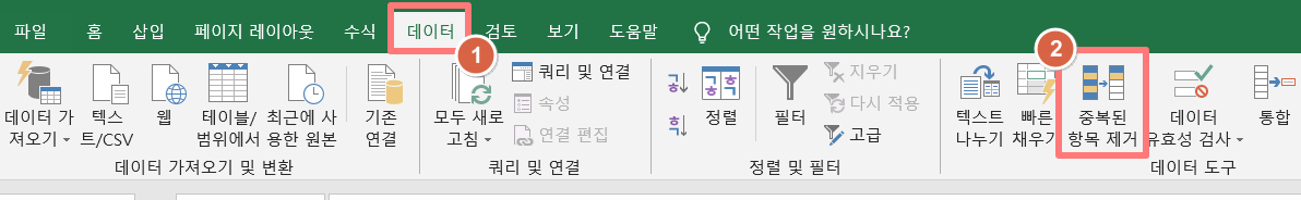 1) 상단 [데이터] 클릭