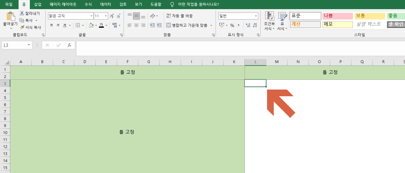 ● 그림을 보면 L3 클릭해서 틀고정 실행한 화면이다.