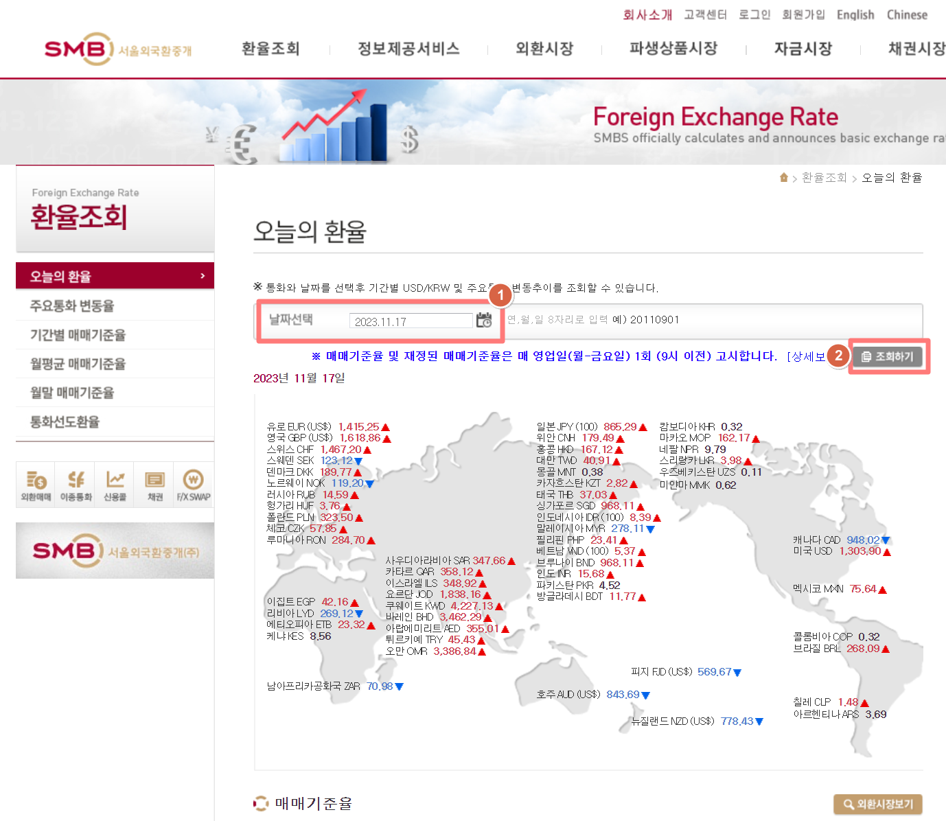 기준환율은 서울외국환중개(주) 사이트에서 확인할 수 있습니다.