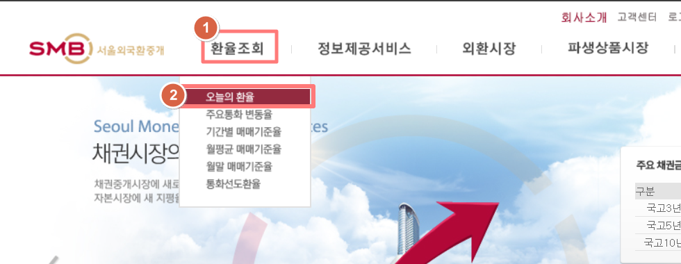 - 홈페이지 접속 후 환율조회 → 오늘의 환율 메뉴 클릭