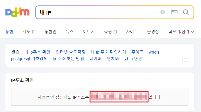 1) 네이버, 다음에서 "내 IP" 검색