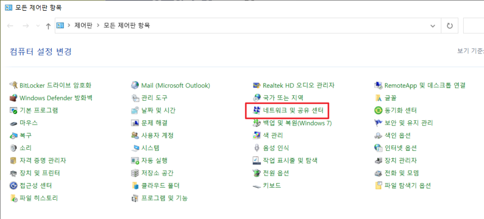 ③ 다르다고 하면 제어판 설정에서 수정해야 한다.