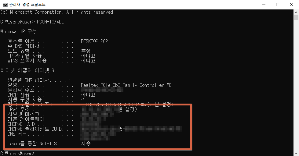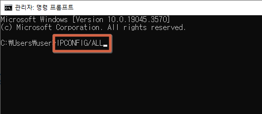 기존보다 검색 방법은 동일하지만 / " IPCONFIG/ALL " 로 확인해야 한다.