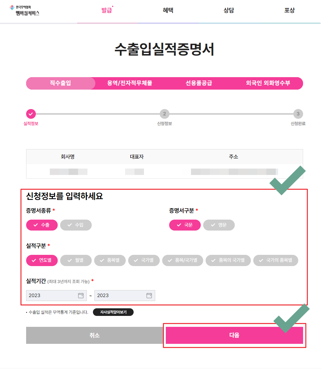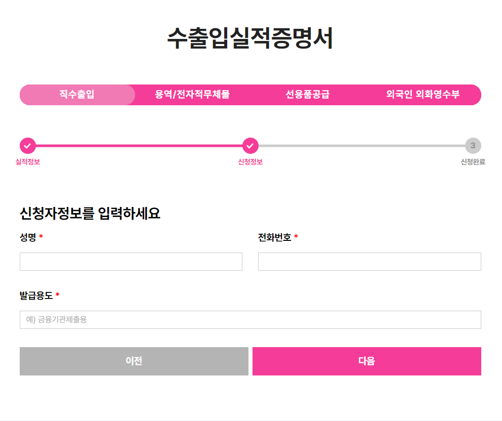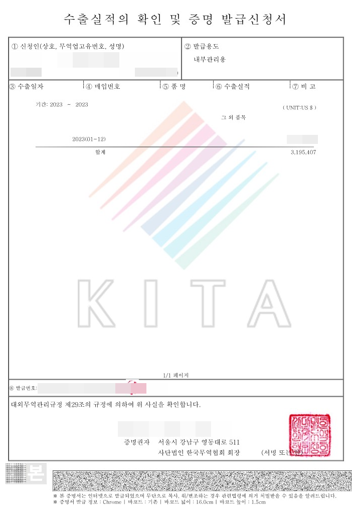3) 수출입실적증명서 발급